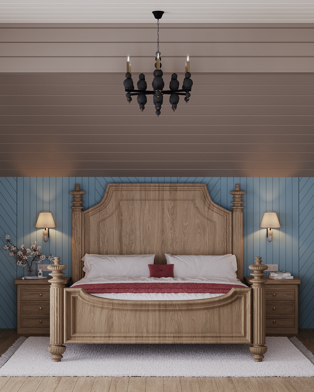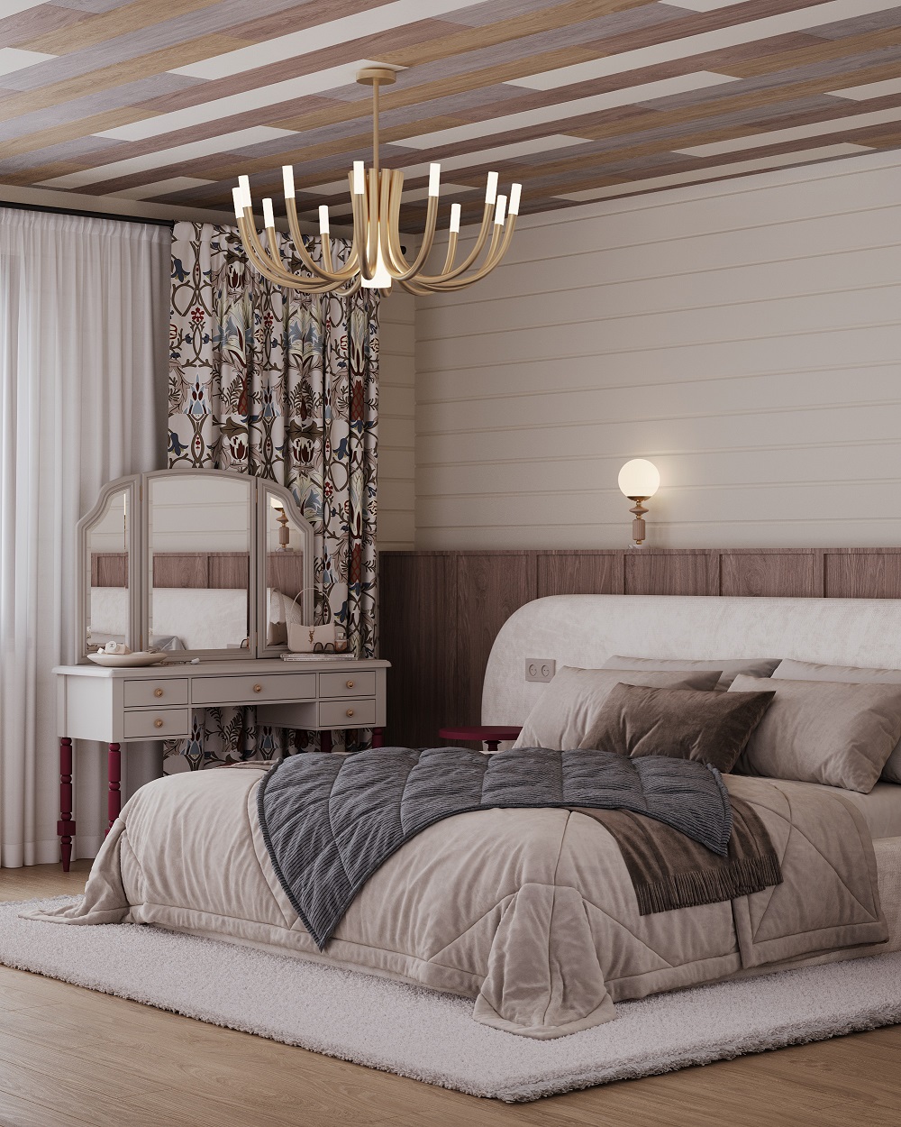 2-этаж: две идентичные спальни (двухместная кровать, шкаф, тумбы, туалетный столик с зеркалом, телевизор, санузел+биде).