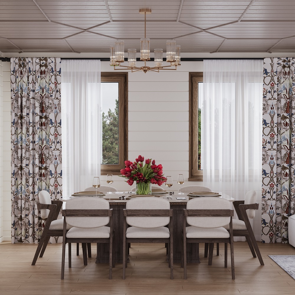 1 этаж: гостиная (кухонный гарнитур, электроплита с духовкой, холодильник, стол и стулья на 6 персон, телевизор, уголок отдыха); санузел (раковина, унитаз); спальня (двухместная кровать, шкаф, тумбы, туалетный столик с зеркалом, телевизор, санузел+биде).