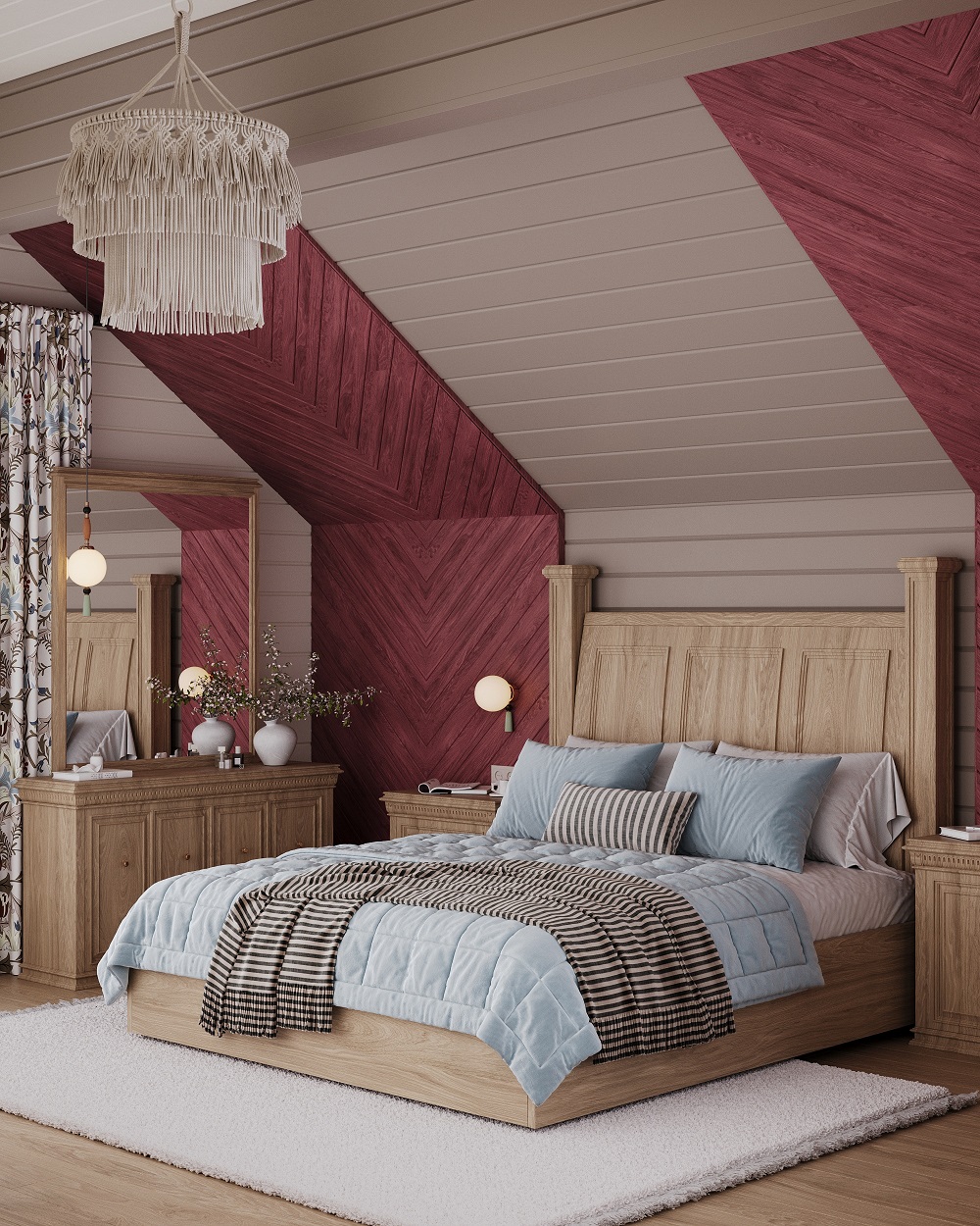2-этаж: две идентичные спальни (двухместная кровать, шкаф, тумбы, туалетный столик с зеркалом, телевизор, санузел+биде).